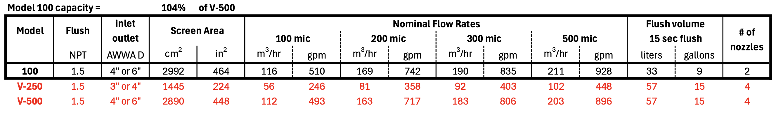 4% more filtration capacity than the V-500